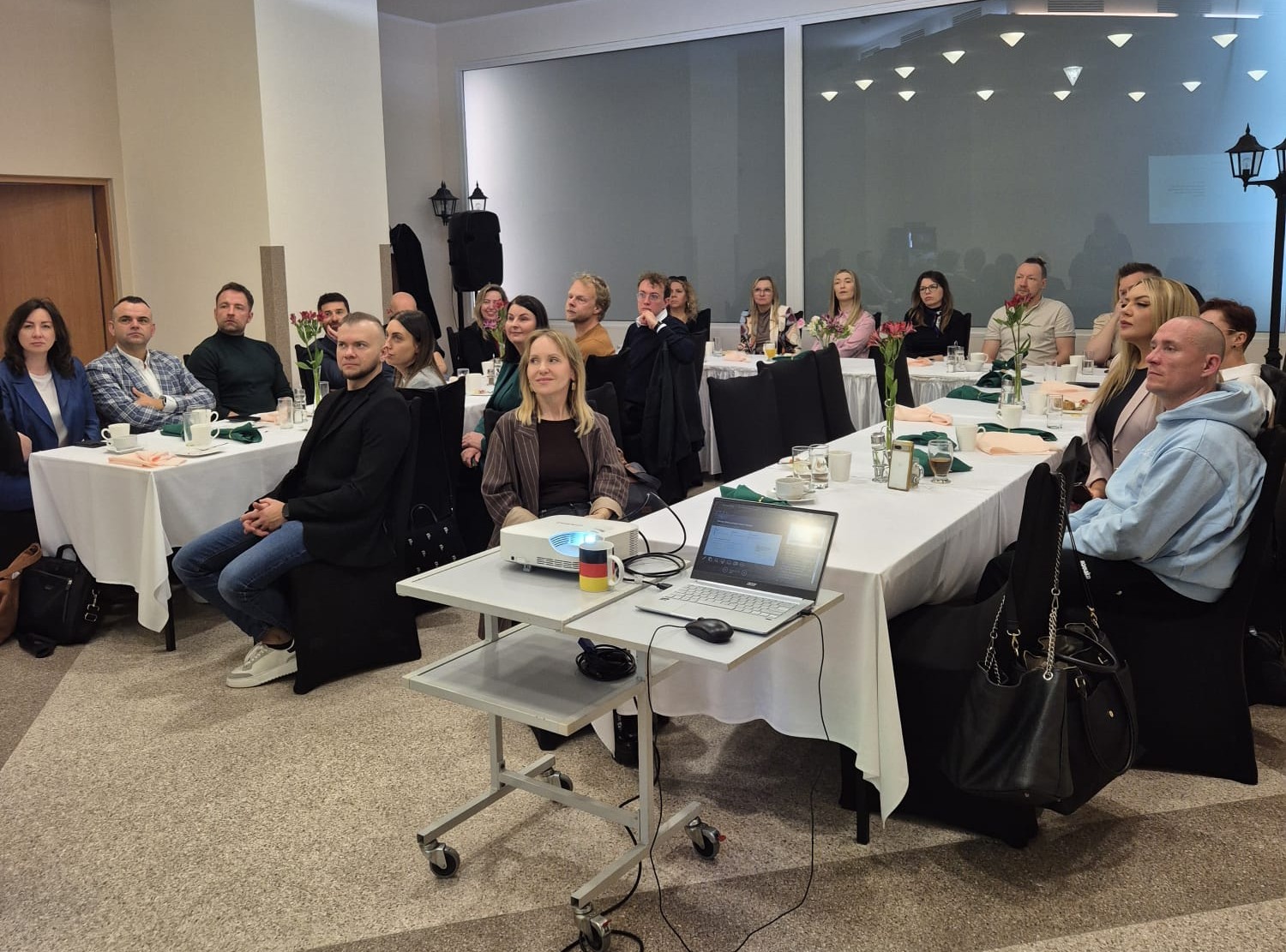 Frekwencja dopisała – 𝐬𝐚𝐥𝐚 𝐛𝐲ł𝐚 𝐰𝐲𝐩𝐞ł𝐧𝐢𝐨𝐧𝐚 𝐩𝐨 𝐛𝐫𝐳𝐞𝐠𝐢, a atmosfera sprzyjała wartościowym rozmowom i nawiązywaniu nowych relacji biznesowych.